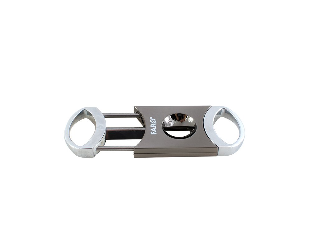Masivní ořezávač doutníků FARO V-Cut s ostrými nerezovými čepelemi a větším otvorem pro doutníky až do prstýnku 64.
