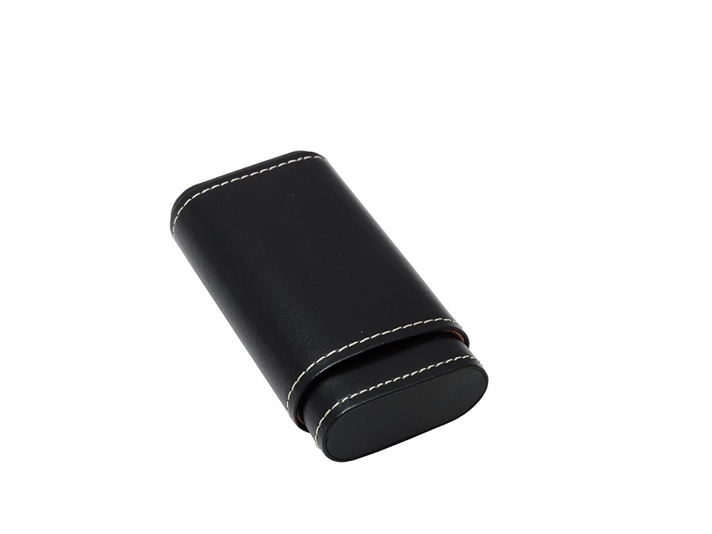 Pouzdro na 2 doutníky Double Robusto v černé kůži je stylové a bezpečné řešení pro uchování vašich doutníků na cestách.