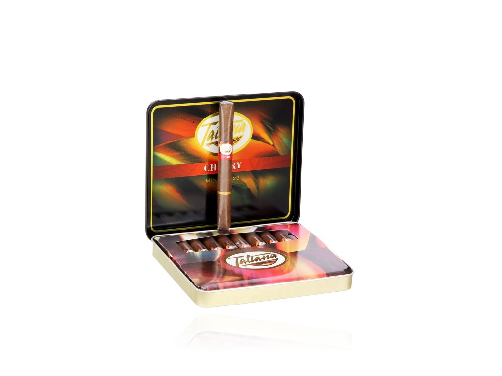 Užijte si Tatiana Miniature Cherry Tin, malé doutníčky s jemnou višňovou příchutí, uložené v atraktivní plechovce.